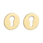 Paar ultra dunne cilinderrozetten met slechts een dikte van 3mm. De gouden cilinderplaatjes hebben een diameter van 54,5 mm en zijn voorzien van een goud gepolijste PVD-coating. De onderrozetten (1 zijde magnetisch) worden door en door bevestigd met de meegeleverde M4 patentvijzen en zijn voorzien van nokken voor een stevige bevestiging. Deze ronde PZ-rozetten passen dankzij het universele design in ieder interieur en zijn geschikt voor binnendeuren met een deurdikte tot 43 mm. Voor bredere deuren kunnen we langere bevestigingsmaterialen meeleveren.