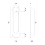 Ovale schuifdeurkom 152 x39 mm met mat zwarte afwerking. Deze schuifdeurkom is gemaakt uit zamak en afgewerkt met een geanodiseerde mat zwarte coating. De inwerkdiepte van de schuifdeurkom is 10,5 mm diep, 24 mm breed en 127 mm hoog. Het gebruik van massief zamak in combinatie met een geanodiseerde mat zwarte coating staat garant voor een lange levensduur.