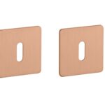 Geef uw interieur een verfijnde uitstraling met STERK rozetten, die opvallen door hun eenvoudige en universele design. Deze hoogwaardige rozetten van 54,5 x 54,5 mm passen perfect in elke ruimte, of het nu gaat om een woonhuis, kantoor of openbare ruimte. Dankzij hun tijdloze ontwerp zijn ze een ideale keuze voor elke deur. De sleutelplaatjes zijn afgewerkt met een sterke mat koperen PVD coating. De onderrozetten (1 zijde magnetisch) worden door en door bevestigd met de meegeleverde M4 patentvijzen en zijn voorzien van nokken voor een stevige bevestiging. De sleutel rozetten zijn ontworpen voor deuren met een dikte van 43 mm. Heeft u een dikkere deur? Geen probleem! Geef ons de benodigde specificaties door, en wij zorgen voor een passend montagepakket.