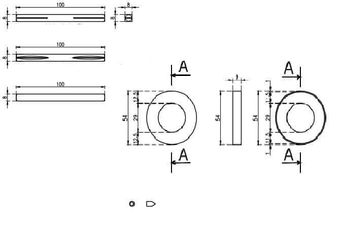 De deurklinken staan op ronde rozetten van Ø 54 mm met een dikte van 9 mm en worden per paar geleverd inclusief metalen onderrozetten, vierkantstift 8x8mm en bevestigingsmaterialen.