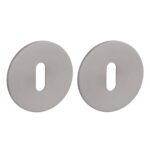 Paar ultra dunne sleutelrozetten met slechts een dikte van 3mm. De RVS sleutelplaatjes hebben een diameter van 54,5 mm en zijn afgewerkt in een basalt PVD (antraciet grijze) coating. De kleur basalt is antraciet grijs achtig en heeft zijn naam te danken aan het vulkanisch stollingsgesteente dat ontstaat door de stolling van lava. De onderrozetten (1 zijde magnetisch) worden door en door bevestigd met de meegeleverde M4 patentvijzen en zijn voorzien van nokken voor een stevige bevestiging. Deze ronde rozetten passen dankzij het universele design in ieder interieur en zijn geschikt voor binnendeuren met een deurdikte tot 43 mm.