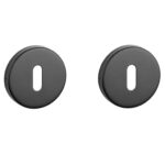Deze mat zwarte sleutelplaatjes zijn vervaardigt uit RVS en behoren tot de OVAL 9 mm collectie van STERK. Deze zwarte sleutelrozetten staan op ronde rozetten van Ø 54 mm met een dikte van 9 mm en zijn voorzien van nokken waardoor ze beter blijven zitten. De STERK sleutelrozetten zijn geschikt voor binnendeuren met een deurdikte tot 43 mm en worden per paar geleverd inclusief metalen onderrozetten en patentvijzen. Voor dikkere deuren kunnen we langere patentvijzen leveren.