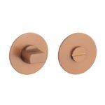 Ultra dun WC-garnituur van STERK met slechts een dikte van 3mm. De ronde rozetten van 3mm hebben een diameter van 54,5mm en zijn afgewerkt met een mat koperen PVD coating. Met deze mooie mat koperen PVD kleur volgt STERK de kleuren trend van het moment. De onderrozetten (1 zijde magnetisch) worden door en door bevestigd met de meegeleverde M4 patentvijzen en zijn voorzien van nokken voor een stevige bevestiging. De vierkante stift is 4x4mm en wordt geleverd in combinatie met adapters van 4 naar 6 en 4 naar 8mm. Dit ronde moderne WC garnituur past dankzij het universele design in ieder interieur.