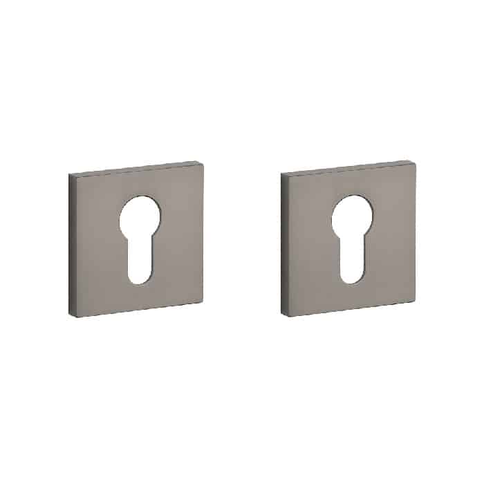 Cilinderrozetten uit de Stile collectie uitgevoerd in titanium. Deze cilinderplaatjes met metalen onderrozetten zijn vierkant 53 mm met een dikte van 7 mm en voorzien van nokken waardoor ze beter blijven zitten. De Stile cilinderrozetten zijn geschikt voor binnendeuren met een deurdikte tot 44 mm en worden per paar geleverd inclusief metalen onderrozetten en bevestigingsmaterialen voor doorlopende bevestiging. Voor bredere deuren kunnen we langere bevestigingsmaterialen meeleveren.