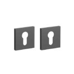 Mat zwarte cilinderrozetten uit de Stile collectie. Deze zwarte cilinderrozetten met metalen onderrozetten zijn vierkant 53 x 53 mm met een dikte van 7 mm en voorzien van nokken waardoor ze beter blijven zitten. Deze Stile cilinderrozetten zijn geschikt voor binnendeuren met een deurdikte tot 44 mm en worden per paar geleverd inclusief metalen onderrozetten en bevestigingsmaterialen voor doorlopende bevestiging. Voor bredere deuren kunnen we langere bevestigingsmaterialen meeleveren.