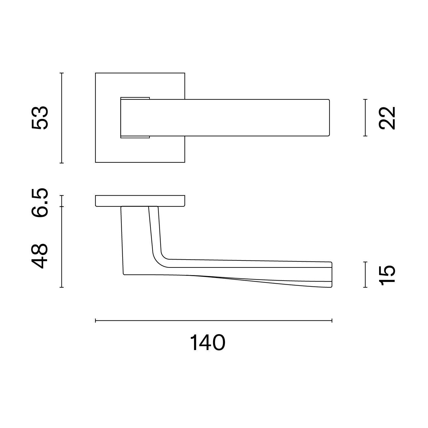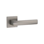 De moderne deurklink LIMA is uitgevoerd in een stijlvolle titanium grijze kleur en geplaatst op geveerde, vierkante rozetten van 53×53 mm en 7 m dik. Deze zijn uit één stuk vervaardigd voor een strakke, naadloze look. Metalen onderrozetten zorgen voor extra stevigheid en langdurig gebruik.