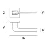 De moderne NAKA deurklink is uitgevoerd in een stijlvolle licht bruine afwerking en gemonteerd op geveerde, vierkante rozetten van 53×53 mm en 7 mm dik. Deze zijn uit één stuk wat zorgt voor een strakke, naadloze uitstraling. De metalen onderrozetten bieden extra stabiliteit en zorgen voor jarenlang betrouwbaar gebruik.