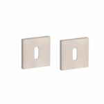 Sleutelrozetten uit de Stile collectie uitgevoerd in mat Nikkel. Deze nikkelen sleutelrozetten met metalen onderrozetten zijn vierkant 53 x 53 mm met een dikte van 7 mm en voorzien van nokken waardoor ze beter blijven zitten. De Stile sleutelrozetten zijn geschikt voor binnendeuren met een deurdikte tot 44 mm en worden per paar geleverd inclusief metalen onderrozetten en bevestigingsmaterialen voor doorlopende bevestiging. Voor bredere deuren kunnen we langere bevestigingsmaterialen meeleveren.