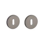 Sleutelrozetten uit de Stile collectie uitgevoerd in Titanium. Deze Titanium sleutelplaatjes met metalen onderrozetten zijn rond 53 mm met een dikte van 7 mm en voorzien van nokken waardoor ze beter blijven zitten. De Stile sleutelrozetten zijn geschikt voor binnendeuren met een deurdikte tot 44 mm en worden per paar geleverd inclusief metalen onderrozetten en bevestigingsmaterialen voor doorlopende bevestiging. Voor bredere deuren kunnen we langere bevestigingsmaterialen meeleveren.
